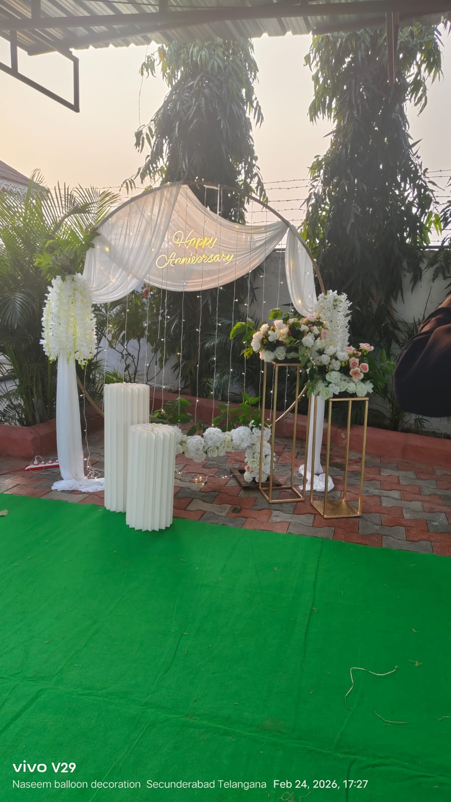Celebrating 25 years of marriage is a significant milestone. Silver Jubilee anniversary decorations are usually with silver tones with white or light blue accents. Start the decoration whether it is a grand or simple anniversary decoration at home. If you're planning for a grand celebration, start with entrance decoration and you can also highlight your event with a special 25th anniversary stage decoration. To make this more unique, add all the important life moments from worst to best moments' photos on the stage. Don’t forget a cake with an anniversary topper wedding cake to make the occasion. At home, even a simple corner can be turned into a celebration place with candles, flowers, and hanging photo frames. Balloon decoration for 25th anniversary events is ideal for both indoor and outdoor decoration. If you prefer a professional touch, hiring PartyOne wedding anniversary decorators can customize your decoration based on the budget and the location. Your anniversary decoration should reflect the beauty and bond of couples.