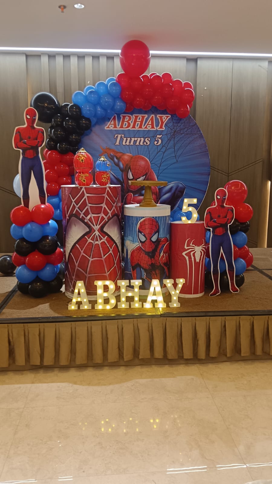 • Theme arch of 250 balloons (Red, Black and Blue color)
