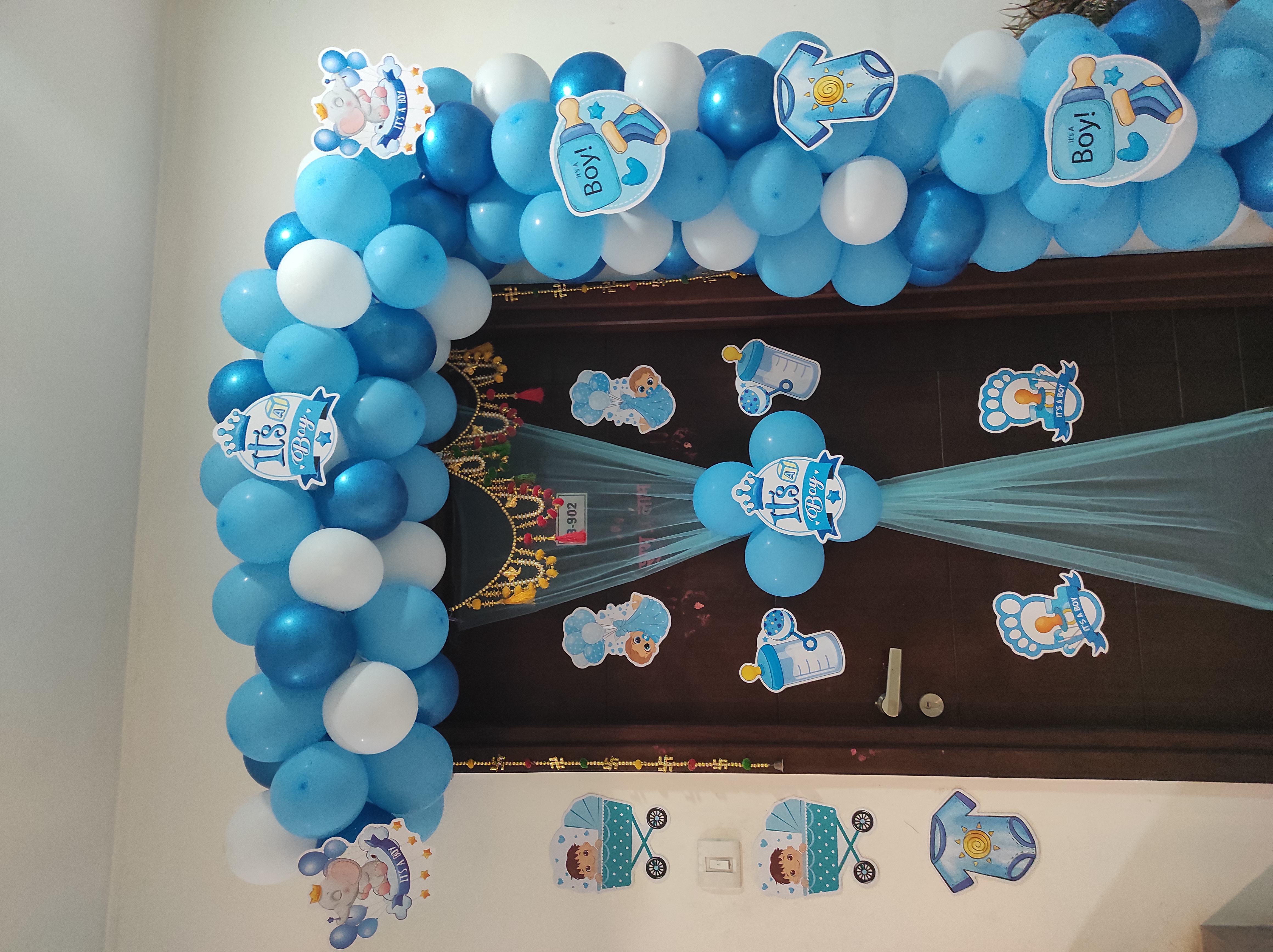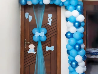 • Entrance arch of 100 balloons (Pastel bule, Latex white and Chrome blue)
