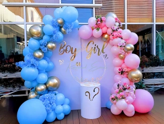 • Arch of 250 balloons (Pastel blue, Pastel Pink and Gold chrome)