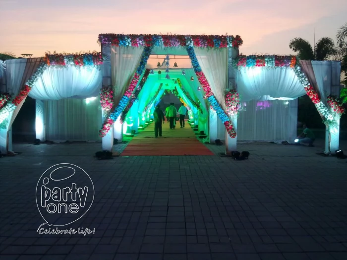 Every bride and groom want a beautifully decorated venue to celebrate their wedding. PartyOne offers various customizable themes and wedding decoration options that bring your vision to life. We make sure to decorate your wedding decorations and venue as unique as your bond. Whether you want a traditional-style wedding at your home, a beachside wedding, a garden wedding, or a grand ballroom celebration, we can do the wedding planning and decorate it according to your taste. At PartyOne, we offer various flower decoration packages depending on the venue size and your choice of flowers. We can decorate the venue with various flowers, such as roses, marigolds, jasmine, orchids, chrysanthemums, carnations, jasmine, tulips, peonies, sunflowers, lotus, and many more. We also offer wedding services with balloon decorations, including arches, garlands, etc. We use luxurious fabrics and elegant drapes to elevate the ambience of your venue. From lanterns and fairy lights to glass pieces, we have countless options to personalize your wedding decoration with enchanting decor pieces. From mesmerizing floral arrangements and grand drapes to centerpieces and customized lighting, we will create a visually captivating venue that awakens your guests. Our PartyOnes professional wedding planners understand that every couple is unique, and their wedding should reflect their individuality. It is a grand day for the soon-to-be-married couples, so they deserve a personalized and custom wedding services. PartyOne offers a broad range of themes and wedding decorations to choose from. In addition, you can talk to our designers to create a personalized theme that reflects the couple's likes and personalities.