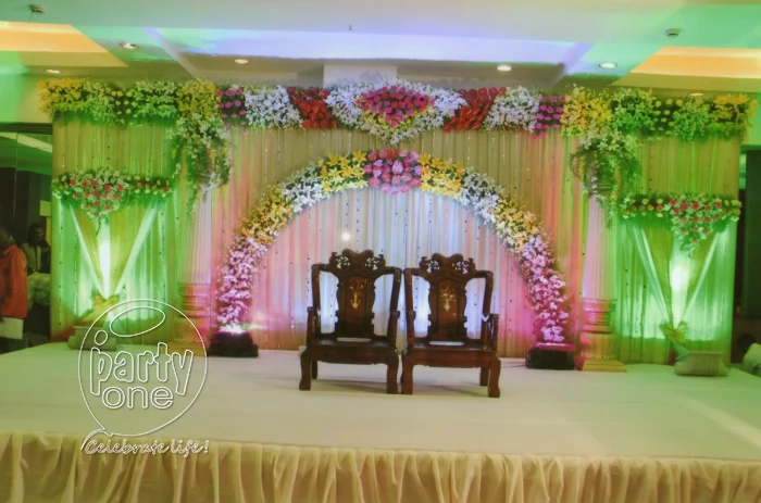 Every bride and groom want a beautifully decorated venue to celebrate their wedding. PartyOne offers various customizable themes and wedding decoration options that bring your vision to life. We make sure to decorate your wedding decorations and venue as unique as your bond. Whether you want a traditional-style wedding at your home, a beachside wedding, a garden wedding, or a grand ballroom celebration, we can do the wedding planning and decorate it according to your taste. At PartyOne, we offer various flower decoration packages depending on the venue size and your choice of flowers. We can decorate the venue with various flowers, such as roses, marigolds, jasmine, orchids, chrysanthemums, carnations, jasmine, tulips, peonies, sunflowers, lotus, and many more. We also offer wedding services with balloon decorations, including arches, garlands, etc. We use luxurious fabrics and elegant drapes to elevate the ambience of your venue. From lanterns and fairy lights to glass pieces, we have countless options to personalize your wedding decoration with enchanting decor pieces. From mesmerizing floral arrangements and grand drapes to centerpieces and customized lighting, we will create a visually captivating venue that awakens your guests. Our PartyOnes professional wedding planners understand that every couple is unique, and their wedding should reflect their individuality. It is a grand day for the soon-to-be-married couples, so they deserve a personalized and custom wedding services. PartyOne offers a broad range of themes and wedding decorations to choose from. In addition, you can talk to our designers to create a personalized theme that reflects the couple's likes and personalities.