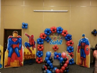 Choosing theme decoration can set the vibe for the event, whether it's a kids' birthday decoration or an adult decoration. Kids' theme decoration ideas: Children love theme decorations like jungle theme decoration, Spiderman theme decoration, Cars theme birthday decoration, cricket theme birthday decoration, Cocomelon birthday decorations, Peppa Pig birthday decorations, and much more. Doing this can add excitement to the entire birthday party. Theme decoration for adults, whether it's for milestone birthday decoration, anniversary decoration, bachelorette decoration, get-together with friends, choosing the right theme decoration can turn a regular event into a more unique and unforgettable event. Here are a few ideas for theme decoration: Black & Gold party theme decoration, Boho theme decoration, terrace decoration, retro theme decoration, etc.PartyOne helps you craft the theme decoration for your kid’s party—from themed entrance decoration, guest-welcoming mascots as per the theme, stage decoration, activity zone for kids and adults, engaging activities like magic shows, tattoo artists, etc., and live eatery with chocolate fountains, popcorn, and cotton candy.PartyOne helps you craft the theme decoration for your kid’s party—from themed entrance decoration, guest-welcoming mascots as per the theme, stage decoration, activity zone for kids and adults, engaging activities like magic shows, tattoo artists, etc., and live eatery with chocolate fountains, popcorn, and cotton candy.