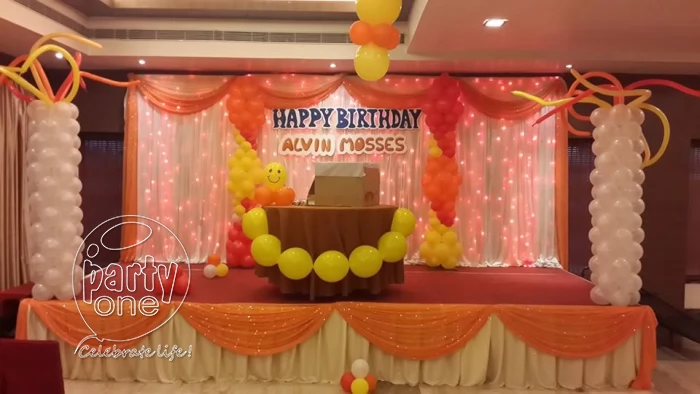 PartyOne is one of the best birthday event organizers. We do balloon decorations, stage decorations, car entry for kids, engaging activities like magic performance, game host, caricature, hair beading, 360 camera booth, live cartoon characters, mascots, and more. We provide live eateries like cotton candy, chocolate fountain, popcorn, etc. If you're planning for a budget-friendly celebration at home, then we can go with simple wall decoration at home, with a magician to engage the guests and family members. A chocolate fountain would be a go-to option for a budget-friendly setup. But if your budget is high and you're looking for a grand celebration, go with themed birthday decorations like jungle theme, Cocomelon theme, etc. Adding live cartoon characters that match the theme, with a juggler or tall man, can be the best option. Then adults' and kids' indoor activities would be the best option to engage the guests and kids. For eateries, adding popcorn, cotton candy, and chocolate fountain can be the best option. Lastly, a birthday photographer and videographer would be best to capture all the moments.