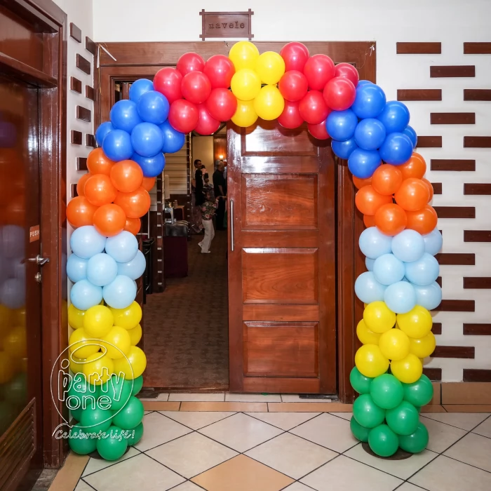 • Arch of 300 balloons ( Blue, Red, Green, Yellow, Orange, Chrome gold and Sky blue)