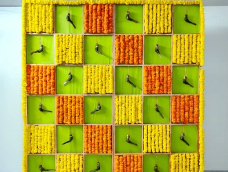 • Marigold flower hanging in 18 boxes (Yellow and Orange color fresh flowers)