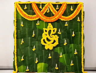 • Natural marigold flower decoration on the backdrop (Yellow and Orange color)