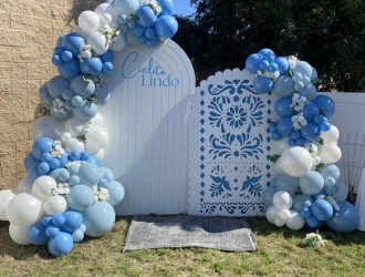 • 300 balloons arches on both the panel (pastel blue, Baby Blue, Sky Blue, White, Pearl White)