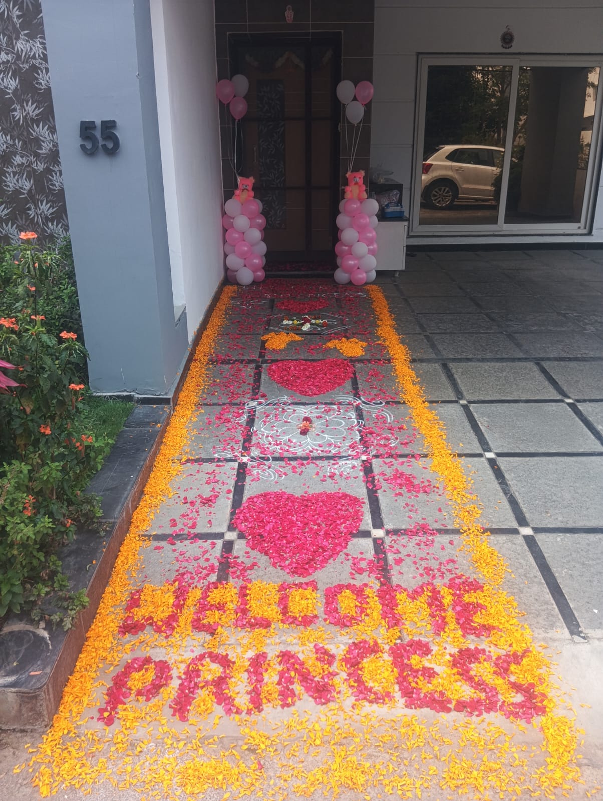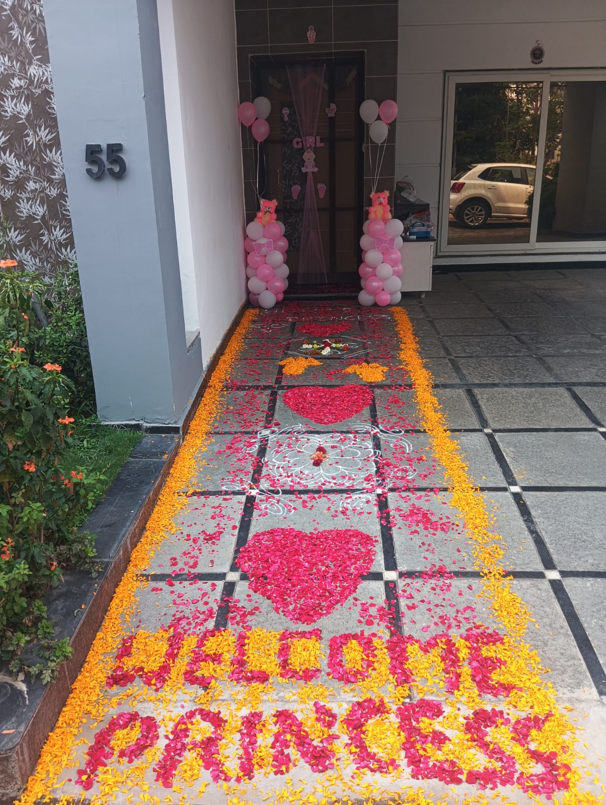 Welcome Baby Girl Balloon and Petal Pathway Decor in Thane