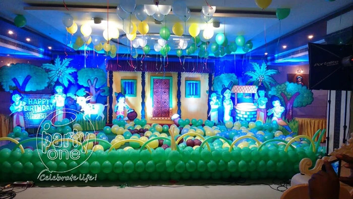 PartyOne is one of the best birthday event organizers. We do balloon decorations, stage decorations, car entry for kids, engaging activities like magic performance, game host, caricature, hair beading, 360 camera booth, live cartoon characters, mascots, and more. We provide live eateries like cotton candy, chocolate fountain, popcorn, etc. If you're planning for a budget-friendly celebration at home, then we can go with simple wall decoration at home, with a magician to engage the guests and family members. A chocolate fountain would be a go-to option for a budget-friendly setup. But if your budget is high and you're looking for a grand celebration, go with themed birthday decorations like jungle theme, Cocomelon theme, etc. Adding live cartoon characters that match the theme, with a juggler or tall man, can be the best option. Then adults' and kids' indoor activities would be the best option to engage the guests and kids. For eateries, adding popcorn, cotton candy, and chocolate fountain can be the best option. Lastly, a birthday photographer and videographer would be best to capture all the moments.