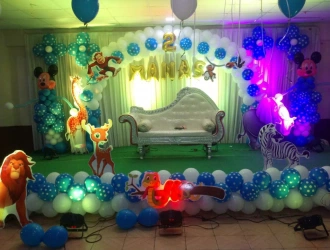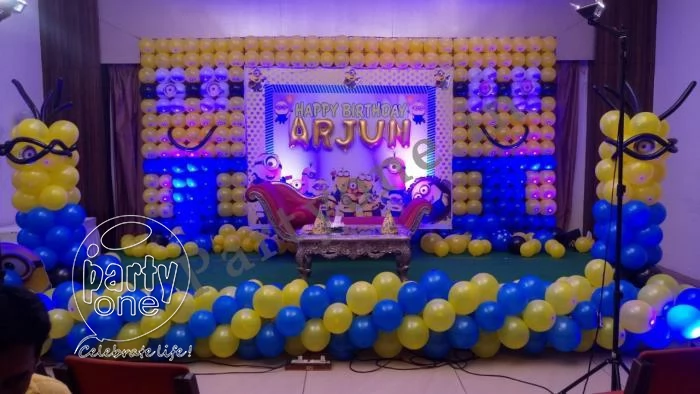 Choosing theme decoration can set the vibe for the event, whether it's a kids' birthday decoration or an adult decoration. Kids' theme decoration ideas: Children love theme decorations like jungle theme decoration, Spiderman theme decoration, Cars theme birthday decoration, cricket theme birthday decoration, Cocomelon birthday decorations, Peppa Pig birthday decorations, and much more. Doing this can add excitement to the entire birthday party. Theme decoration for adults, whether it's for milestone birthday decoration, anniversary decoration, bachelorette decoration, get-together with friends, choosing the right theme decoration can turn a regular event into a more unique and unforgettable event. Here are a few ideas for theme decoration: Black & Gold party theme decoration, Boho theme decoration, terrace decoration, retro theme decoration, etc.PartyOne helps you craft the theme decoration for your kid’s party—from themed entrance decoration, guest-welcoming mascots as per the theme, stage decoration, activity zone for kids and adults, engaging activities like magic shows, tattoo artists, etc., and live eatery with chocolate fountains, popcorn, and cotton candy.PartyOne helps you craft the theme decoration for your kid’s party—from themed entrance decoration, guest-welcoming mascots as per the theme, stage decoration, activity zone for kids and adults, engaging activities like magic shows, tattoo artists, etc., and live eatery with chocolate fountains, popcorn, and cotton candy.